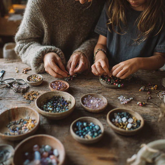 Ogni pezzo di Lucia & Sofia è realizzato a mano al tavolo di famiglia — creato con cura, pazienza e tanto amore. Ciò che nasce dalle mani di una madre e dalla curiosità della figlia diventa un gioiello senza tempo, fatto per custodire un significato.
